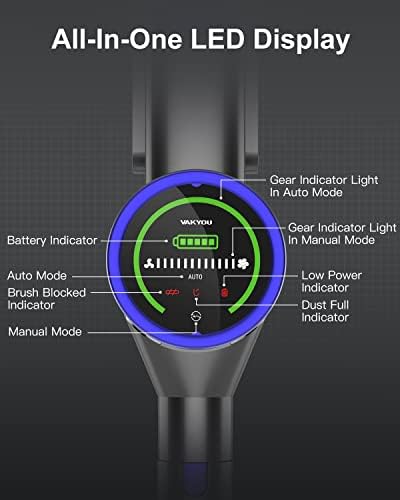 • 【Upgraded Powerful Sunction】VAKYOU cordless vacuum cleaner features 450W upgraded brushless motor, provides powerful suction for 33Kpa on max mode, captures pet hair, cat litter, pet food, and other messes on the hardwood floor, low-pile carpet, stairs, bed, curtain, furniture, car, RV, etc.In addition,our floor brush has the capacity of current induction in the automatic mode which will swith to different currents automatically in different objects such as the smooth floor and carpet.