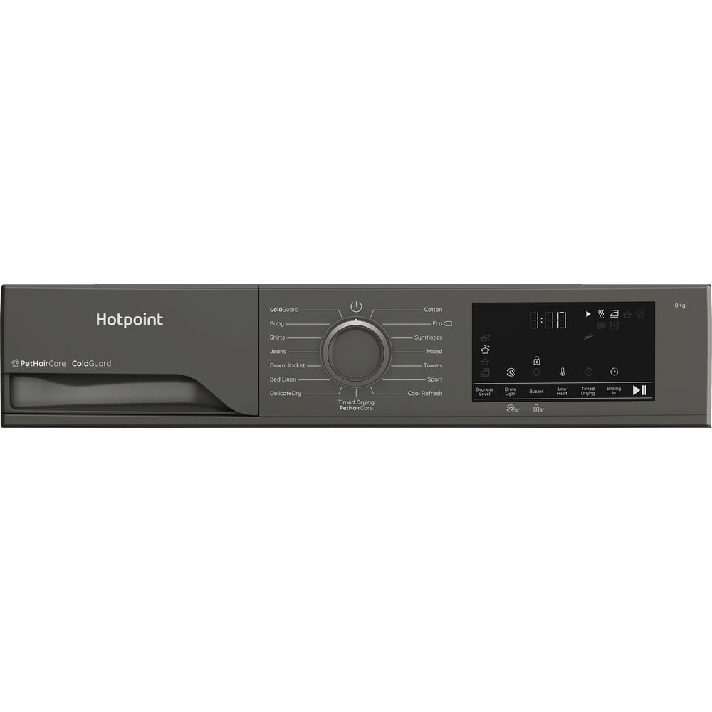 Bringing together energy-efficient Heat Pump drying, specialist PetHairCare, flexible ColdGuard installation, and easy maintenance, the Hotpoint C HSD 82M GG UK tumble dryer is a smart, reliable solution for modern homes. It delivers gentle fabric care, lower running costs, and everyday practicality, helping you stay in control of laundry day with confidence.