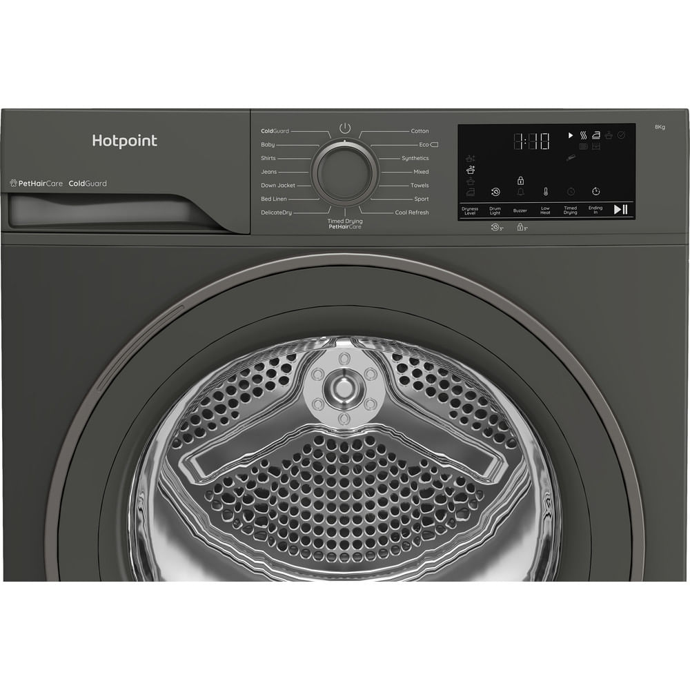 Hotpoint C HSD 82M GG UK Freestanding 8kg Heat Pump Tumble Dryer with PetHairCare – Grey