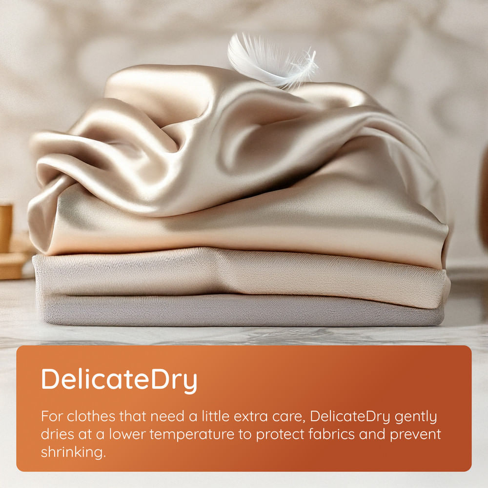 DelicateDry gently dries clothes at a lower temperature, helping to prevent shrinkage and fabric damage. This makes it ideal for delicate garments that need extra care to stay looking and feeling their best.