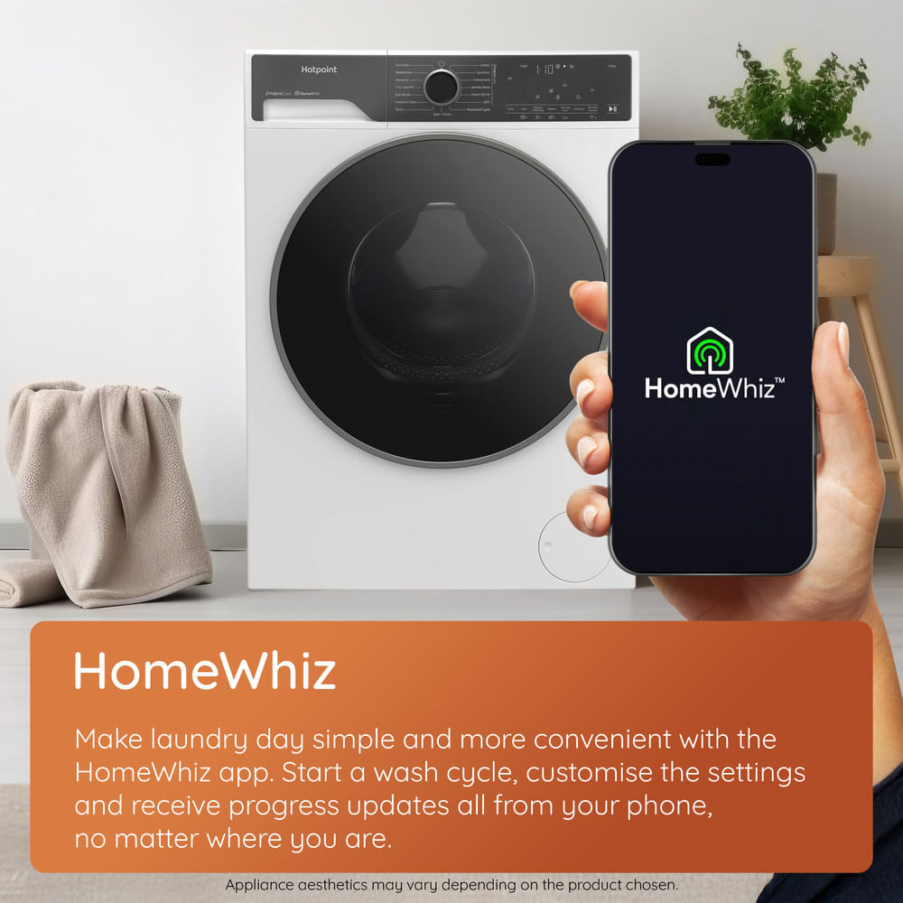 With HomeWhiz connectivity, laundry fits around your schedule. Using the app, you can start wash cycles, customise settings, and receive progress updates straight from your phone. Whether you’re at home or away, HomeWhiz helps you stay in control and manage laundry more efficiently.