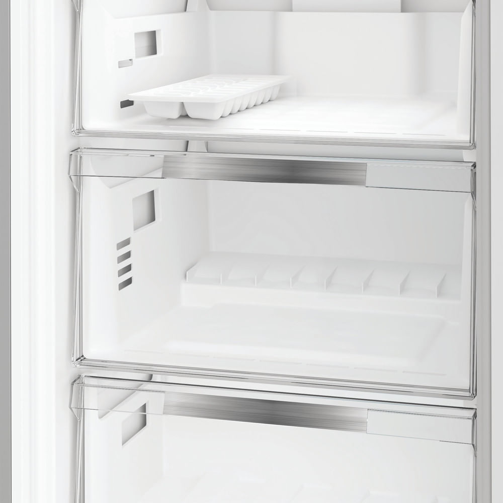 Dual No Frost technology circulates cool air evenly through the fridge and freezer sections, preventing ice and moisture build-up. This means you never have to defrost, drawers glide smoothly, and food stays in better condition without sticking together or becoming soggy.