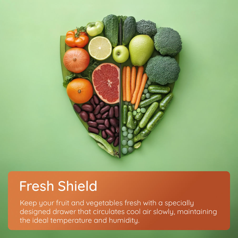 This fridge freezer is built to solve common food storage problems such as uneven cooling, frost build-up, and food spoiling too quickly. Advanced cooling technologies work together to maintain stable temperatures, reduce moisture loss, and eliminate the need for manual defrosting. Whether you are storing fresh fruit and vegetables, dairy products, or frozen meals, this appliance helps keep food fresher for longer while making daily life more convenient.