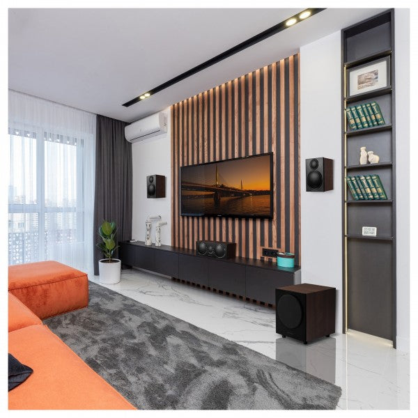 Introducing the Wharfedale DX-3 HCP 5.1 Speaker Package, a home audio marvel that builds on the success of the DX-2 and inherits the legacy of Wharfedale's acclaimed Diamond 12 series. The full-range satellite speakers, inspired by Diamond 12, deliver rich sound with silk dome tweeters and woven polypropylene woofers. The dedicated center speaker ensures crystal-clear vocals, employing a horizontal layout and twin woofers for seamless integration with large screens. The powerful subwoofer, featuring an 8” cone and 75W active amplifier, provides robust bass, enhancing cinematic thrills. With auto on/off and phase inversion for flexible placement, this package is available in Black Oak and Walnut finishes, seamlessly blending with diverse interiors. Elevate your home cinema experience with the Wharfedale DX-3 HCP 5.1 Speaker Package – where extraordinary sound meets aesthetic sophistication.