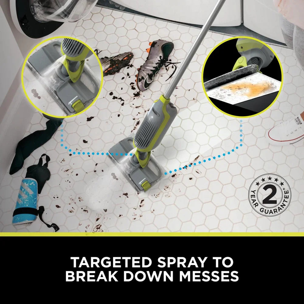 - TARGETED SPRAY: Tackle stubborn stains with the ondemand spray and single-use pads that lock away grime for good, leaving kitchen, lounge & hallway floors fresh.