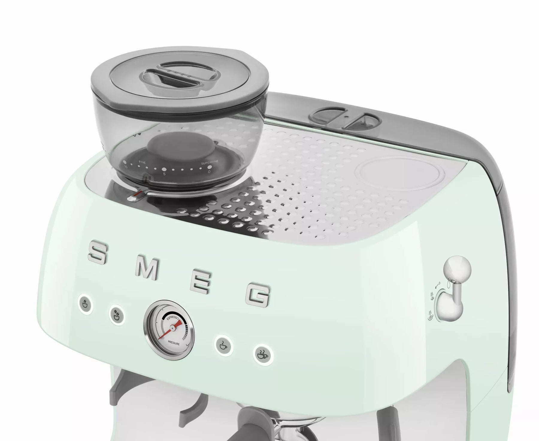 Smeg EGF03PGUK Retro Espresso Coffee Machine with Grinder in Pastel Green