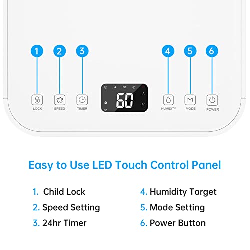 - Designed with Effortless Use in Mind – The timer allows you to schedule the dehumidifier to turn on or off over a 24-hour window. The filter of dehumidifier is removable and easy to clean. It even comes with 360° rotatable wheels and a safe child lock that makes it easy to move the dehumidifier anywhere you want without any safety concerns.