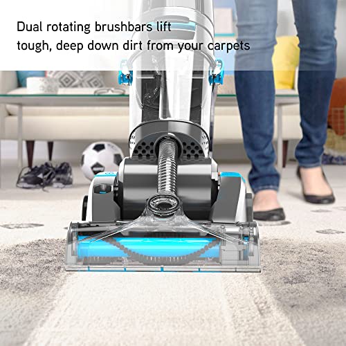 - Dual rotating brushbars lift tough, deep down dirt from your carpets