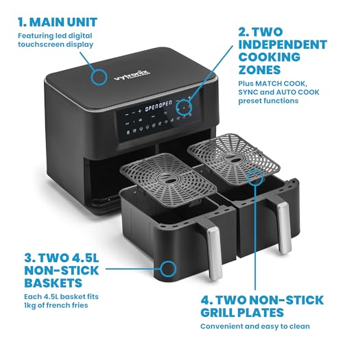 Vytronix DD9L Dual Zone Air Fryer 2 Drawer 9L Efficient 2400W lthy Oil Free & Low-Fat Cooking