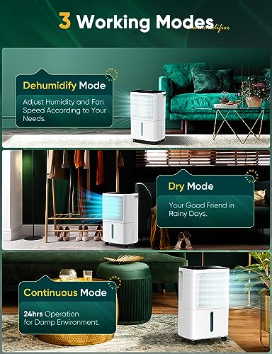 - đăSmart and PortableăEasily move the dehumidifiers for home from room to room with 360-degree caster wheels and hidden side handles.The dehumidifier for bedroom is endowed with a 108mÂł/H high-efficiency air circulation & dehumidification to dry out the indoor air and make it comfortable for the whole wet season, It's the ideal companion for your home