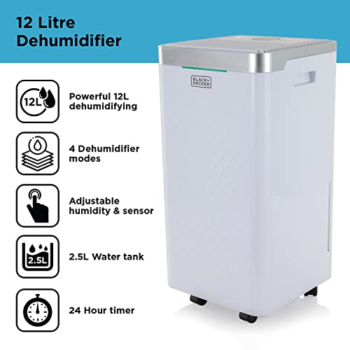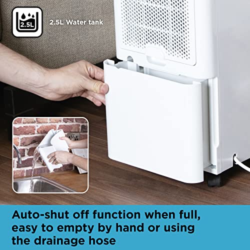 - LARGE WATER TANK: Capable of extracting up to 12 litres of unwanted moisture a day with its large 2.5L water tank, which can be removed for easy drainage and cleaning