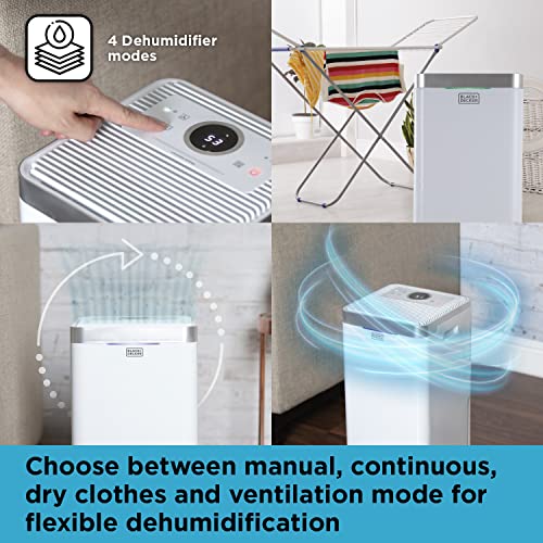 - 4-in-1 FUNCTIONALITY: Choose between four preset functions to tackle evaporating moisture in the air and protect your home with powerful dehumidifying, continuous droplet collection, effective clothes drying or increased air ventilation