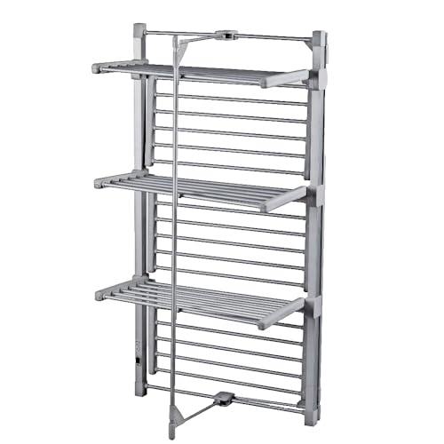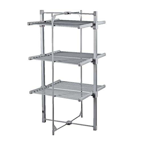 - Dry clothes more quickly in any weather Energy-efficient, costing about 4-9 p per hour (please check your own cost of electricity due to recent energy price rises as this unit uses 330w ) 21 meters of extra drying space Lightweight aluminium Shelves can be fully or partially extended Folds away flat for easy storage Includes a free fitted cover