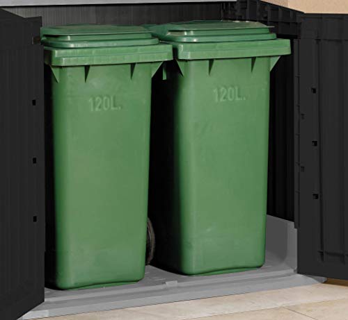 - Ideal outdoor storage solution for garden tools and equipment, BBQ and accessories and x2 120 Litre wheelie bins