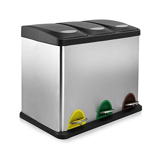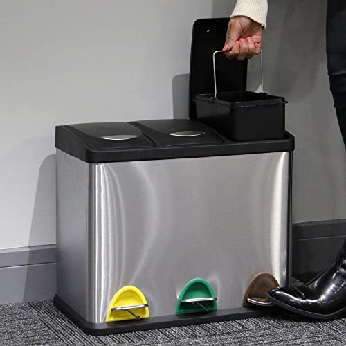 - ✔️ MULTIPLE COMPARTMENTS - Featuring dedicated compartments that are hygienically operated via the colour coded foot pedals, conveniently bringing all your recycling bins into one place.